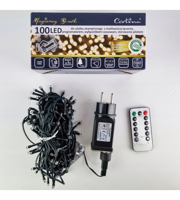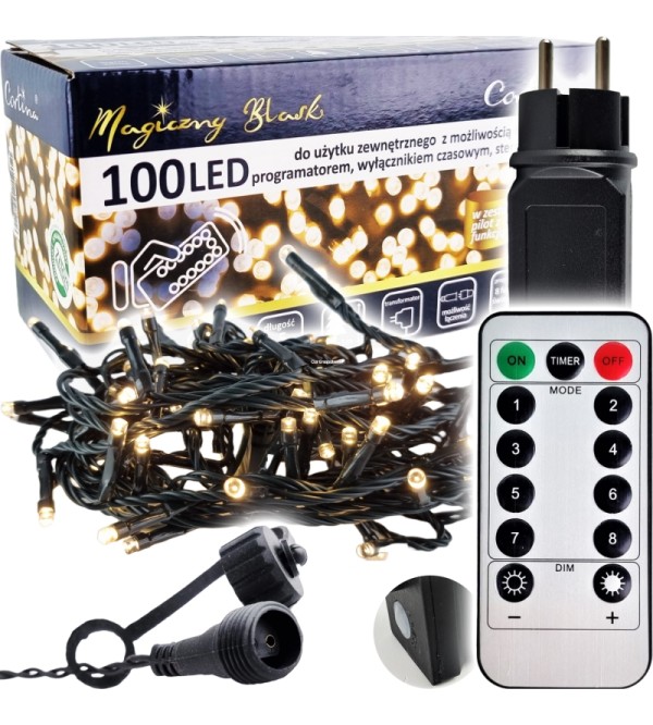 Vianočná reťaz 100L prepájacia zásuvka, programátor, časovač diaľkové ovládanie - WW