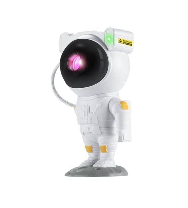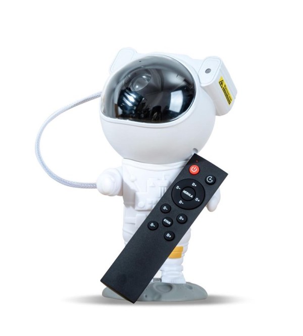 Projektor hviezd a galaxií je umiestnený v magnetickej hlave astronauta, čo umožňuje nastaviť uhol svetla. Zariadenie je napájané káblom USB.